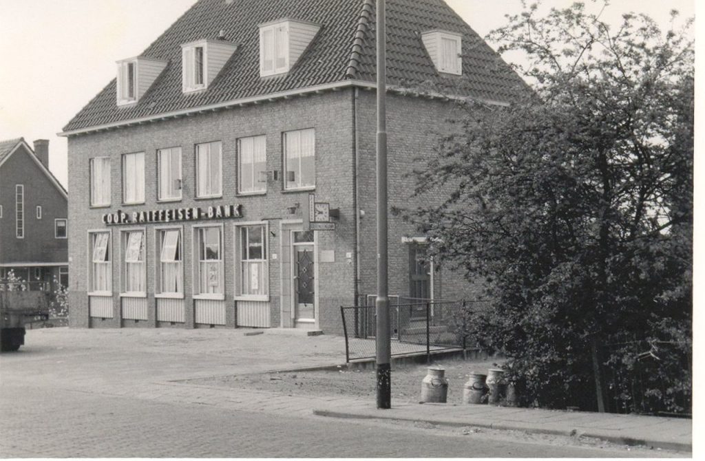 Het pand is in 1956 gebouwd onder architectuur van L.N. Krijgsman. De oorspronkelijke ingang zat aan de voorkant rechts. Klanten konden via een wachtruimte plaats nemen in een afgesloten loketruimte om zo hun bankzaken rustig te bespreken met de dienstdoende medewerk(st)er.